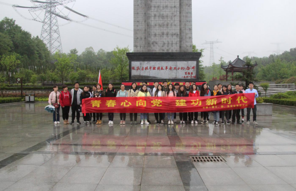 4月29日上午,31名團員青年乘坐大巴來到了張店鄉(xiāng)無名革命烈士陵園。一行人自覺排列好隊伍,由兩名青年抬著花籃,莊重肅穆地敬獻(xiàn)于廣場中央的紀(jì)念碑前,全體人員鞠躬默哀。隨后,面對團旗,團員青年們舉起右手重溫入團誓詞,響亮而堅定的誓詞響徹廣場。乍暖還寒,細(xì)雨從天空落下,在同志們的發(fā)絲凝結(jié)成小水滴,也絲毫不影響大家的熱血和激情。