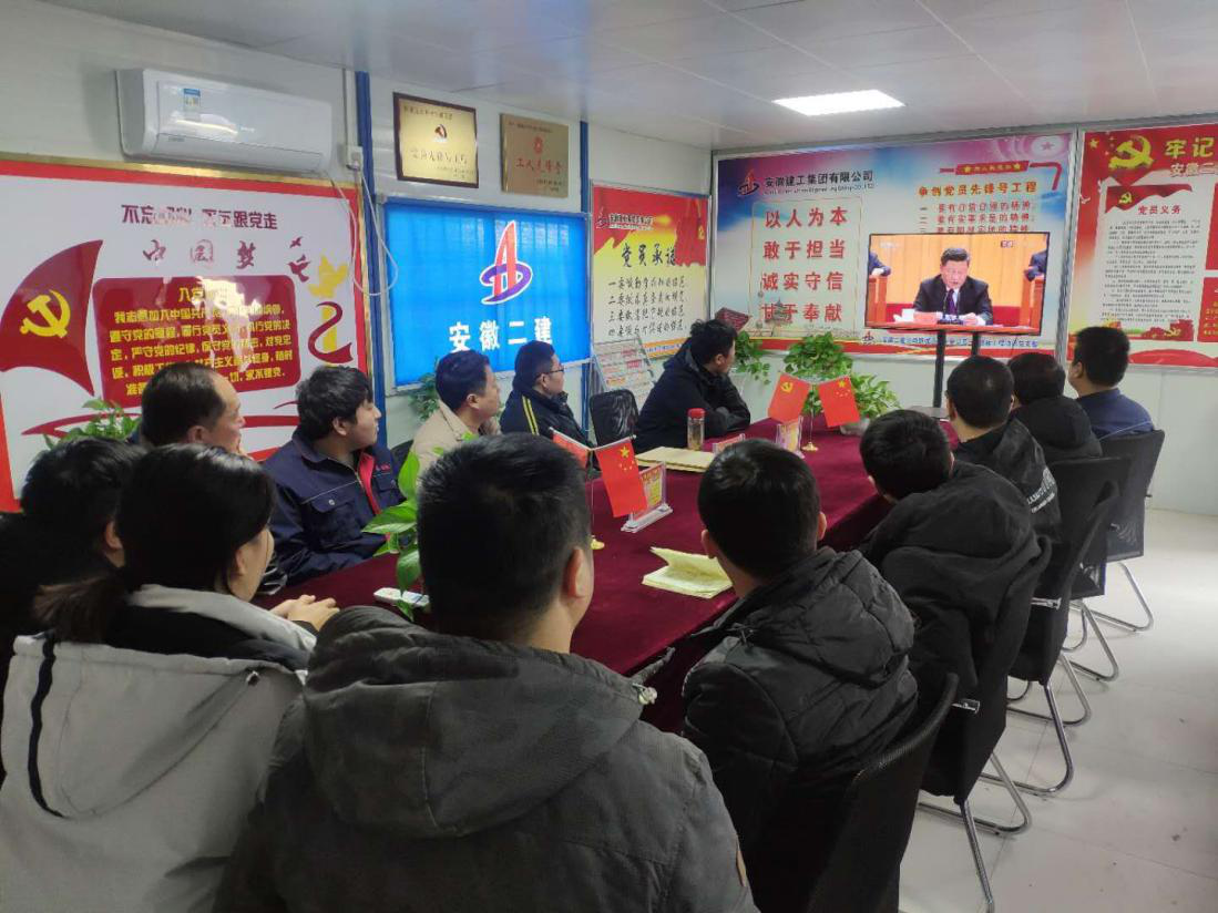 2018年12月18日,慶祝改革開(kāi)放四十周年大會(huì)在北京召開(kāi)。一分公司舒城遠(yuǎn)大中央公園一期B標(biāo)段項(xiàng)目黨支部組織黨員及青年團(tuán)員集中收看大會(huì)的實(shí)況直播。