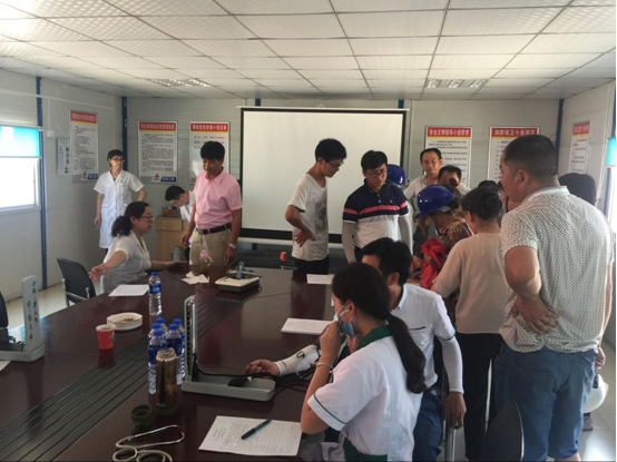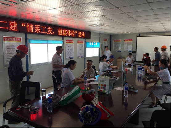 在會(huì)議室,工人們有序地排隊(duì)進(jìn)行各項(xiàng)檢查,并不時(shí)提出各種健康疑問(wèn),醫(yī)生耐心的解答并指出夏季作業(yè)的注意事項(xiàng)。隨后,體檢結(jié)果由項(xiàng)目管理人員分發(fā)到工人手里,活動(dòng)順利結(jié)束。