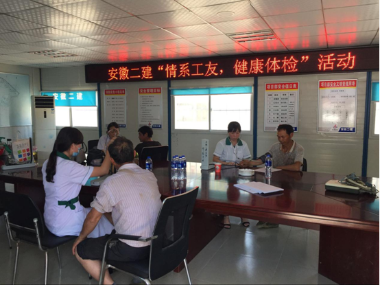 入伏后,持續(xù)的高溫晴熱天氣不僅炙烤著項(xiàng)目施工工地,也考驗(yàn)著廣大一線(xiàn)職工的身體健康,本著“以人為本”的理念和“預(yù)防為主,安全第一”的要求,一分公司舒城遠(yuǎn)大中央公園項(xiàng)目部組織開(kāi)展了對(duì)班組工人進(jìn)行全員體檢。