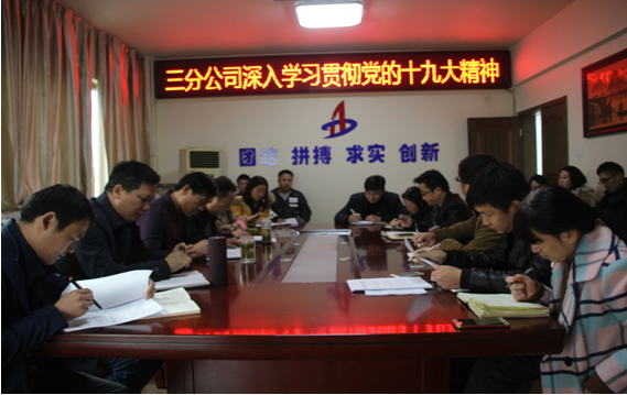 學(xué)習(xí)中,與會黨員認(rèn)真研讀了報告,并就黨的十九大主題、中國共產(chǎn)黨歷史使命、習(xí)近平新時代中國特色社會主義思想、堅定不移全面從嚴(yán)治黨,以及貫徹新發(fā)展理念、建設(shè)現(xiàn)代化經(jīng)濟體系等章節(jié)和內(nèi)容進行了重點學(xué)習(xí)領(lǐng)會。與此同時,三分公司黨支部書記陳習(xí)武對如何進一步學(xué)習(xí)貫徹黨的十九大精神提出了三點要求,他強調(diào):一是要把學(xué)習(xí)好貫徹好十九大精神作為當(dāng)前和今后一段時期的首要政治任務(wù),認(rèn)真學(xué)習(xí)領(lǐng)會核心要義和精神內(nèi)涵,始終在思想上、政治上、行動上與習(xí)近平總書記為核心的黨中央保持高度一致;二是創(chuàng)新學(xué)習(xí)方式方法,堅持學(xué)以致用。要通過報紙、電視和網(wǎng)絡(luò)等多種平臺,通過集中學(xué)習(xí)、自學(xué)等方式,全面、準(zhǔn)確、深入地學(xué)習(xí)領(lǐng)會大會提出的一系列新思想、新提法、新觀點、新舉措,并要堅持以學(xué)促做,切實用十九大精神指導(dǎo)實踐、推動工作;三是每位黨員都要制定學(xué)習(xí)貫徹黨的十九大精神計劃,明確學(xué)習(xí)時間節(jié)點,嚴(yán)格落實,黨支部將把學(xué)習(xí)貫徹黨的十九大精神作為民主評議黨員的一項重要內(nèi)容。
