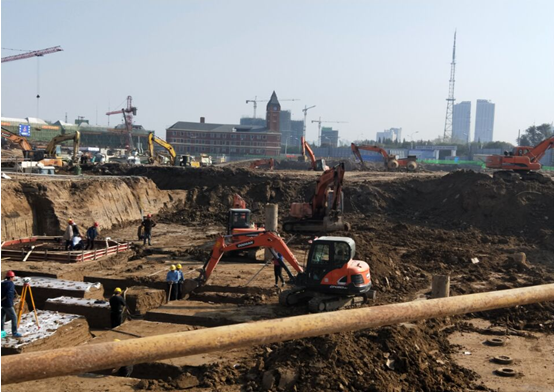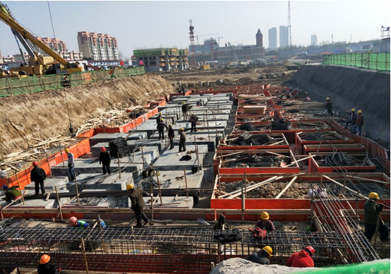 目前,各棟樓施工順利進行,從土方開挖到地下室施工,處處呈現(xiàn)一片繁忙景象,施工高潮已全面形成。