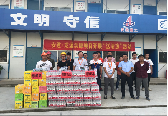 炎炎夏日高溫?zé)o情,絲絲涼意公司有愛(ài)。自7月以來(lái),氣溫持續(xù)升高,為應(yīng)對(duì)高溫酷暑天氣龍溪觀邸項(xiàng)目部積極采取有效措施,及時(shí)開(kāi)展夏季“送清涼”慰問(wèn)活動(dòng),充分體現(xiàn)了項(xiàng)目部對(duì)廣大參建員工和農(nóng)民工的關(guān)愛(ài)。
