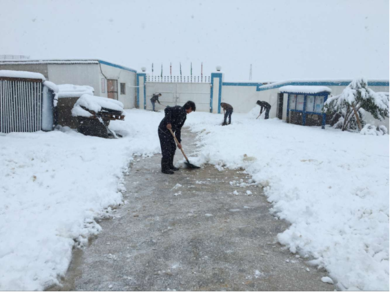 近日,阿爾及利亞康斯坦丁接連下了幾場大雪,雪花翩躚飛舞,康斯坦丁大地一片銀裝素裹。為了防止路面結冰,方便人員出行,1月19日早晨,在項目部經理章恒旭的帶領下,康斯坦丁6000套項目部全體管理人員頂風冒雪、齊心協(xié)力上路清理項目部院內及道路積雪。