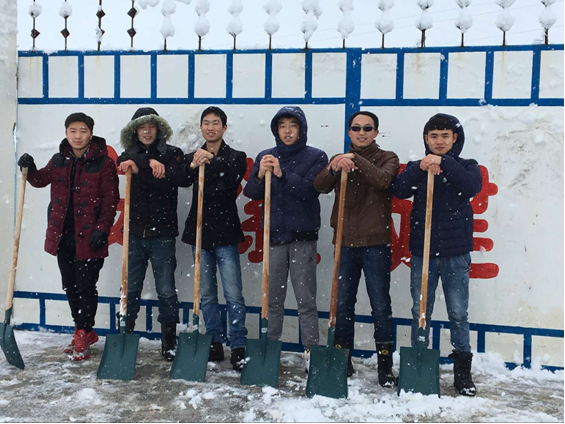 寒風陣陣,雪花飄飄,厚厚的積雪讓人步履艱難,但這并沒有阻擋隊伍的鏟雪進度,每一鍬、每一鏟,都凝結大家的付出和努力。經過奮戰(zhàn),道路,院內積雪都被清掃干凈,確保了道路暢通和人員安全,極大的方便了項目全體人員的出行,項目建設進度得以正常推進。