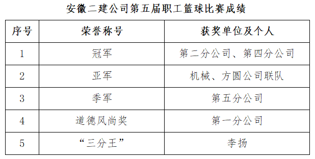 本屆比賽共有8支球隊(duì)報(bào)名參賽,參賽人數(shù)和規(guī)模都較上屆有所增加,球隊(duì)的競技水平也在提高。比賽中,每支球隊(duì)均認(rèn)真對待,分析對手,研判戰(zhàn)術(shù),全力以赴,不到比賽最后一刻決不放棄,場上一個(gè)個(gè)漂亮的傳球、一次次精彩的投射,球隊(duì)精湛的球藝,頑強(qiáng)的打拼精神,給每一位觀眾留下了深刻的記憶,給精神上帶來了無比的愉悅。尤其最后一場冠、亞軍決賽在二分公司、四分公司兩支球隊(duì)間激烈比拼,在40分鐘的比賽時(shí)間里兩隊(duì)打成平局,進(jìn)入加時(shí)賽后,兩隊(duì)比分交替上升,你方進(jìn)球我方籃板,各自得分,三個(gè)加時(shí)賽后,兩隊(duì)仍然保持平局,場上隊(duì)員拼盡全力為集體而戰(zhàn),為榮譽(yù)而戰(zhàn)的精神感動在場的每一個(gè)人。整場比賽高潮迭起,吶喊聲不斷,祝賀的掌聲不斷,為運(yùn)動員加油,為不放棄堅(jiān)持到底的體育精神助威!最后兩隊(duì)握手言和,并列第一。隊(duì)員們相擁鼓勵,擊掌祝賀!贏得了對手尊重,贏得了比賽勝利!