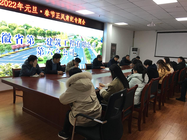 2022年元旦、春節(jié)將至,為進(jìn)一步強(qiáng)化正風(fēng)肅紀(jì),確保 “兩節(jié)”期間風(fēng)清氣正,12月31日下午,第六分公司黨支部召開正風(fēng)肅紀(jì)專題會(huì)議,認(rèn)真學(xué)習(xí)貫徹中共中央辦公廳、國務(wù)院辦公廳和中央紀(jì)委印發(fā)《關(guān)于做好2022年元旦春節(jié)期間正風(fēng)肅紀(jì)工作的通知》,對(duì)做好元旦春節(jié)期間有關(guān)工作提出明確要求,馳而不息糾“四風(fēng)”、樹新風(fēng),積極營造歡樂祥和、文明節(jié)儉、風(fēng)清氣正的節(jié)日氛圍。