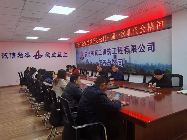 2月28日,安徽二建公司一屆一次職工代表大會(huì)勝利召開。會(huì)議結(jié)束后,第五分公司積極行動(dòng),迅速掀起貫徹學(xué)習(xí)職代會(huì)精神熱潮。