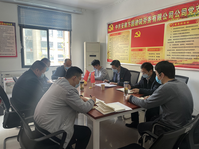 3月30日上午,方圓勞務(wù)公司黨支部在會議室召開2021年度組織生活會,公司黨委委員、副總經(jīng)理葉和永,黨委工作部主任施用宏、紀(jì)檢監(jiān)察室主管呂楊到會指導(dǎo),會議由方圓勞務(wù)公司黨支部書記朱慶年主持,全體黨員參會。