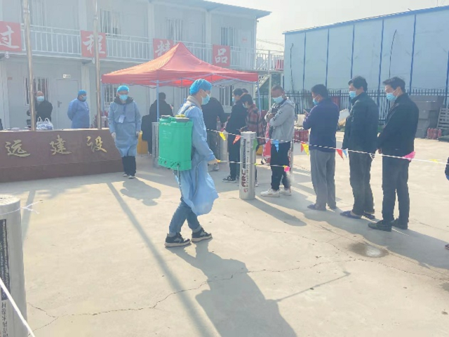 宿遷市進(jìn)入4月份以來疫情較為嚴(yán)重,自4月1日起,全市分區(qū)域進(jìn)行封控、管控,上級(jí)政府部門要求施工單位積極配合協(xié)助開展防疫工作。疫情就是命令,接到任務(wù)后,項(xiàng)目經(jīng)理劉闖立即召開防疫工作會(huì)議,全面落實(shí)各項(xiàng)疫情防控措施。設(shè)置單獨(dú)的隔離觀察室,用于需臨時(shí)隔離觀察的人員單獨(dú)生活居??;準(zhǔn)備口罩、測溫計(jì)、消毒液等防疫物資;排查兩周內(nèi)往來史、接觸史,杜絕疫情的輸入性、擴(kuò)散性蔓延;對(duì)所有進(jìn)出施工區(qū)、辦公區(qū)、生活區(qū)人員進(jìn)行實(shí)名制登記和現(xiàn)場消毒殺菌;嚴(yán)格落實(shí)施工工地封閉管理,全面管控人員出入工地,無關(guān)人員不得進(jìn)入工地,項(xiàng)目部人員停止休假、探親和聚集活動(dòng)。除此之外,3月26日起,政府在項(xiàng)目部設(shè)置了核酸檢測站點(diǎn),目前已連續(xù)進(jìn)行了19次核酸檢測,包括附近工地和居民,每天約一千人,工作量極大。項(xiàng)目部志愿者積極配合現(xiàn)場防疫工作,對(duì)每個(gè)進(jìn)入現(xiàn)場的人員進(jìn)行掃碼、登記、測量體溫,為打贏疫情防控阻擊戰(zhàn)貢獻(xiàn)國企力量。
