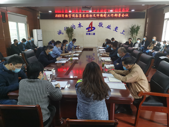 4月19日上午,安徽二建公司在一樓會(huì)議室召開(kāi)2022年物資設(shè)備集采工作部署會(huì)議。公司總經(jīng)理李建成、副總經(jīng)理葉和永以及相關(guān)職能部門(mén)負(fù)責(zé)人、所屬各單位行政負(fù)責(zé)人、生產(chǎn)副經(jīng)理及相關(guān)科室負(fù)責(zé)人參加會(huì)議,會(huì)議由公司副總經(jīng)理、總工程師費(fèi)勤波主持。