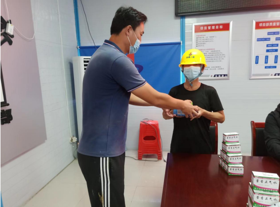 本次防暑降溫藥品包括藿香正氣水、仁丹、風(fēng)油精等,由安全員統(tǒng)一發(fā)放至各施工班組。除發(fā)放防暑降溫物品外,各項目部還加強(qiáng)對現(xiàn)場防暑工作檢查力度,確保防暑降溫設(shè)施安全有效運(yùn)行,杜絕一線人員中暑事件發(fā)生,確保員工生命安全和現(xiàn)場生產(chǎn)秩序。