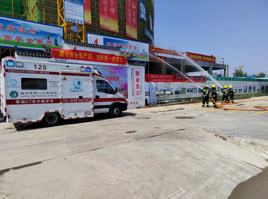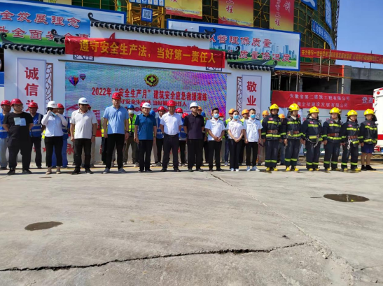 6月24日下午,第四分公司宿州三館一院一中心PPP項目部與宿州市埇橋區(qū)住建局、埇橋區(qū)消防救援大隊、宿州市城東新區(qū)管委會、埇橋區(qū)重點局、上海宏信建設(shè)發(fā)展有限公司聯(lián)合開展2022年“安全生產(chǎn)月”建筑安全應(yīng)急預(yù)案演練。