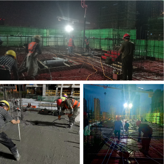 大干熱潮興起后,項目施工現(xiàn)場,機械轟鳴,200多名建設(shè)者各司其職、有序忙碌,施工線上一派熱火朝天的場景。面對緊張的施工工期,項目緊扣施工節(jié)點,按關(guān)鍵工序調(diào)資源、定節(jié)點、下指標、落實人,加強人員、機械、設(shè)備等資源保障,從施工生產(chǎn)組織、問題整改、安全文明施工等方面抓好落實,加班加點突擊目標任務(wù),確?!按蟾?00天”勞動目標任務(wù)圓滿實現(xiàn)。