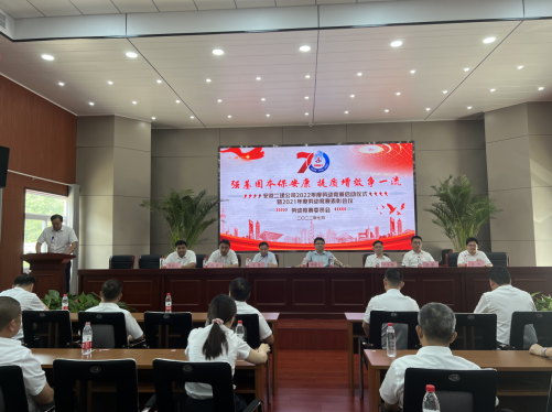 7月7日上午,安徽二建公司舉行了“強基固本保安康 提質增效爭一流”2022年勞動競賽啟動儀式暨2021年度勞動競賽表彰會議。公司領導出席會議,勞動競賽委員會成員、所屬各單位主要領導、分管生產(chǎn)及質量副經(jīng)理、工會主席、工程管理科、安全科全體人員、參賽項目經(jīng)理代表等共80余人參會。會議由黨委副書記、工會主席王軍主持。