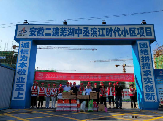王軍、葉和永一行首先開展了“送清涼”,向項(xiàng)目部送上礦泉水、茶葉等防暑降溫用品,慰問了在酷暑下奮戰(zhàn)的一線員工。