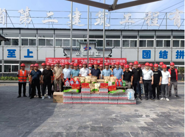 在肥東石塘鎮(zhèn)火龍社區(qū)安置點(diǎn)項(xiàng)目,葉和永為項(xiàng)目職工送上了夏季防暑藥品、飲料、花露水、毛巾等慰問(wèn)品,叮囑他們要做好疫情防控形勢(shì)下的高溫作業(yè)和高溫天氣下的勞動(dòng)保護(hù)。