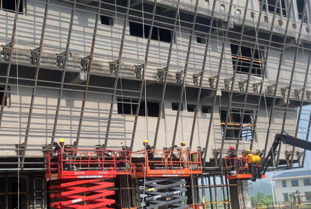 目前,宿州三館一院一中心項目已全面進入到裝飾裝修階段,按照下半年生產(chǎn)目標(biāo),項目部針對室內(nèi)裝修、室外鋪裝、幕墻安裝、鋼網(wǎng)架等工作內(nèi)容細化階段目標(biāo)和責(zé)任人,每晚組織技術(shù)科、施工科與裝修班組、安裝班組召開生產(chǎn)進度分析會,對當(dāng)天問題及時溝通和解決,保證不耽誤生產(chǎn)進度。