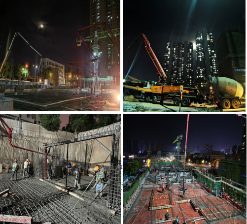 為完成各項(xiàng)節(jié)點(diǎn)計(jì)劃,項(xiàng)目管理人員帶領(lǐng)各勞務(wù)班組“搶晴天、戰(zhàn)雨天,牛毛細(xì)雨當(dāng)好天”,搶抓工期,比拼進(jìn)度;進(jìn)入夏季以來,持續(xù)高溫,市氣象部門接連多次發(fā)布橙色預(yù)警,戶外溫度常達(dá)40度以上,為確保工人作業(yè)安全,項(xiàng)目部及時調(diào)整施工作業(yè)時間,在確保施工安全的前提下,采取“干兩頭、歇中間”的施工措施,組織班組加班加點(diǎn)分批交叉作業(yè),呈現(xiàn)出“月亮底下當(dāng)白天,不給黑夜留時間”的大干火熱場面。同時項(xiàng)目部每日在高溫時段為現(xiàn)場施工人員送去防暑藥品和降溫飲品,防止意外發(fā)生。隨著最近氣溫逐漸轉(zhuǎn)涼,整個施工現(xiàn)場挖機(jī)聲、機(jī)械聲、泵送聲相互交織;夜色下施工現(xiàn)場燈光如晝,人頭躦動;渣土車、混凝土罐車川流不息往返穿梭,現(xiàn)場各個工作面的施工人員都卯足勁往前沖。