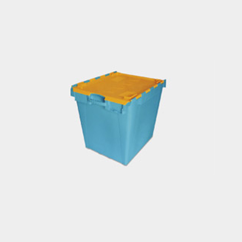1. 物流箱為可插式、帶連體外翻箱蓋;把手搬運(yùn)舒適,空箱套入時,把手在外。